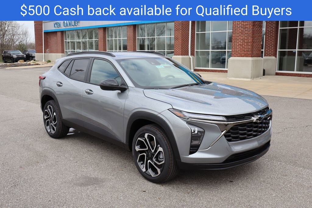 $1,210 off MSRP! How would you like cruising away in this handsome-looking 2026 Chevrolet Trax 2RS in Sterling Gray Metallic, beautifully equipped with Preferred Equipment Group 2RS, *Heated steering wheel, Auto High-beam Headlights, Automatic temperature control, Front Bucket Seats, Fully automatic headlights, Heated front seats, Rear Backup Camera, Tilt/Telescoping steering wheel, Wheels: 19 Black-Painted Machined Aluminum, 2-Way Adjustable Front Head Restraints, 2-Way Power Driver Lumbar Seat Adjuster, 3.50 Final Drive Axle Ratio, 4-Way Manual Front Passenger Seat Adjuster, 4-Wheel ABS Disc Brakes, 6 Speakers, 6-Speaker Audio System Feature, 8-Way Power Driver Seat Adjuster, ABS brakes, Air Conditioning, Alloy wheels, Brake assist, Bumpers: body-color, Compass, Cruise Control, Delay-off headlights, Driver door bin, Driver vanity mirror, Dual front impact airbags, Dual front side impact airbags, Electronic Stability Control, Emergency communication system: OnStar One Essentials, Evotex Seat Trim, Front anti-roll bar, Front Center Armrest, Front reading lights, Front wheel independent suspension, Heated door mirrors, Heated Driver and Front Passenger Seats, Illuminated entry, Leather steering wheel, Low tire pressure warning, Occupant sensing airbag, Outside temperature display, Overhead airbag, Overhead console, Panic alarm, Passenger door bin, Passenger vanity mirror, Power door mirrors, Power driver seat, Power steering, Power windows, Premium audio system: Chevrolet Infotainment 3, Radio data system, Radio: AM/FM Stereo Audio System, Rear window defroster, Rear window wiper, Remote keyless entry, Security system, SiriusXM, SiriusXM Trial Subscription, Split folding rear seat, Spoiler, Sport steering wheel, Steering wheel mounted audio controls, Tachometer, Tilt steering wheel, Traction control, Trip computer, Variably intermittent wipers, and Wireless Apple CarPlay/Wireless Android Auto! *Heated steering wheel, Auto High-beam Headlights, Automatic temperature control, Front Bucket Seats, Fully automatic headlights, Heated front seats, Preferred Equipment Group 2RS, Rear Backup Camera, Tilt/Telescoping steering wheel, Wheels: 19 Black-Painted Machined Aluminum.