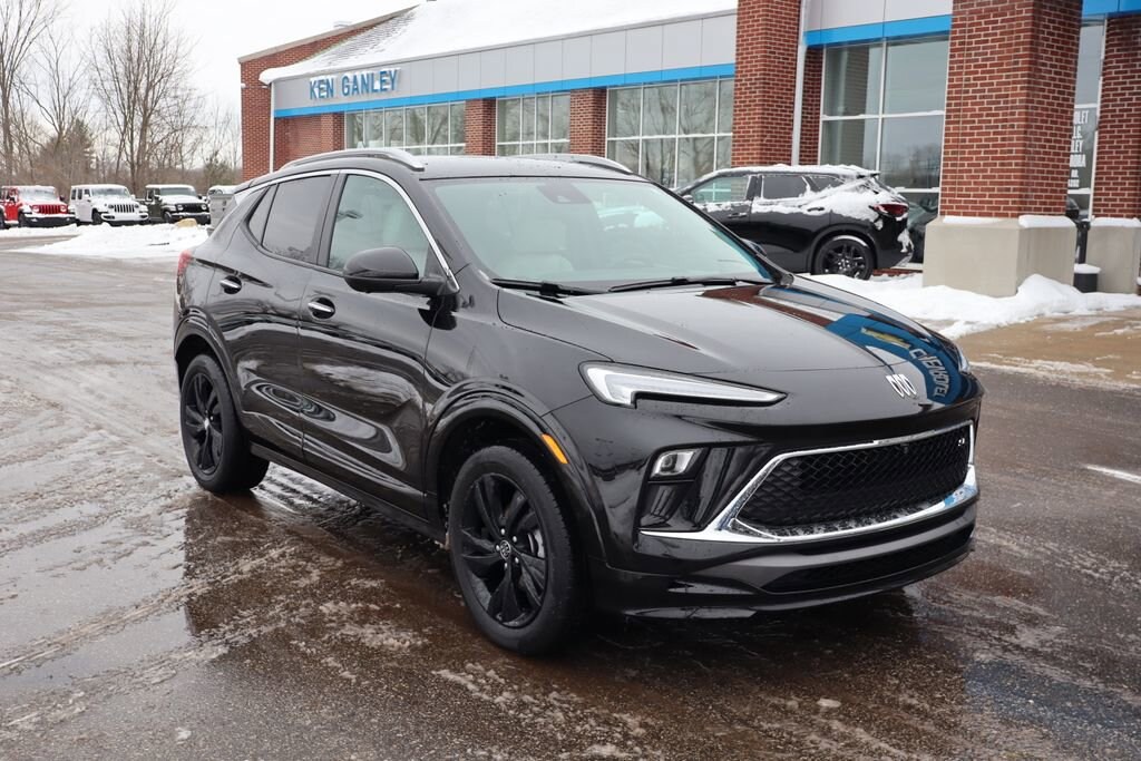 Recent Arrival! 2024 Ebony Twilight Metallic Buick Encore GX Sport Touring 4-Wheel ABS Disc Brakes, Adaptive Cruise Control, Advanced Technology Package, Auto High-beam Headlights, Automatic temperature control, Enhanced Performance 7-Speaker System w/Amplifier, HD Surround Vision, Power Liftgate, Power steering, Preferred Equipment Group 1SD, Rear Park Assist, Ride & Handling Suspension, SiriusXM, Wheels: 18 Gloss Black Aluminum, Wireless Charging.Odometer is 3727 miles below market average! 26/28 City/Highway MPGThis vehicle passed our Rigorous Safety inspection Performed by a Certified Technician. Value Internet Pricing: ALL of our customers receive REAL-TIME market value pricing. Our internet team spend countless hours ensuring we have the best price, based on equipment, mileage and condition. For your peace of mind, all of our vehicles include over 50 photos for you to judge the condition yourself. We provide a Carfax/ VIN history report and service records for every vehicle. As you do your comparison shopping, youâll see Ganley Chevy of Aurora offers the best values in the market. Weâre also prepared to offer the very best financing and warranty options. Nobody beats our interest rates! Have a car youâd like to sell? Weâll pay top dollar for it. For the most up-to-date pricing, photos, and inventory please visit www.GanleyGM.com. Call or stop by Chevy of Aurora today. 310 W. Garfield Rd. Aurora, Ohio 44202. 330-562-8585. Out of town buyers: free airport pick-up. We can help arrange delivery right to your front door too!At Ken Ganley Chevrolet Aurora, we are proud to be a trusted Chevrolet dealership serving Aurora, Ohio, and the surrounding communities including Cleveland, Akron, Solon, Twinsburg, Hudson, and Streetsboro. As part of the Ken Ganley Automotive Group, our mission is to deliver an exceptional automotive experience built on integrity, transparency, and outstanding customer service. We offer a wide selection of new Chevrolet vehicles, from dependable sedans to powerful trucks and family-friendly SUVs, along with a carefully inspected inventory of pre-owned and certified pre-owned vehicles. Whether youâre searching for a new Chevy Silverado, Equinox, Traverse, or a quality used car, our knowledgeable sales team is here to help you find the perfect fit for your lifestyle and budget. Beyond sales, our commitment continues with a state-of-the-art service and parts department staffed by factory-trained technicians. From routine maintenance to major repairs, we use genuine Chevrolet parts to keep your vehicle running at its best for years to come. At Ken Ganley Chevrolet Aurora, we value long-term relationships and strive to be the dealership you can rely on for all your automotive needs. We look forward to welcoming drivers from Aurora and nearby cities and helping you experience the difference of shopping with a dealership that truly puts customers first.
