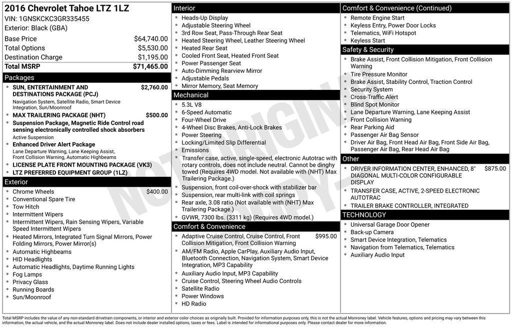 Recent Arrival! 2016 Black Chevrolet Tahoe LTZ 4WD, Jet Black Leather, Power Sunroof, Rear Seat Blu-Ray/DVD Entertainment System, Sun, Entertainment & Destinations Package.