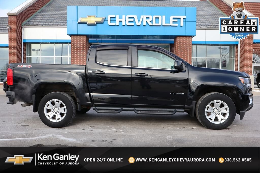 2018 Black Chevrolet Colorado LT 3.42 Rear Axle Ratio, All-Weather Floor Liner (LPO), Black Bowtie Emblem Package (LPO), Drop-In Bedliner w/Tailgate Liner (LPO), EZ-Lift & Lower Tailgate, Front Fog Lamps, Heavy-Duty Trailering Package, LT Convenience Package, Manual Rear-Sliding Window, Preferred Equipment Group 4LT, Rear-Window Electric Defogger, Remote Vehicle Starter System, Wheels: 17 x 8 Blade Silver Metallic Cast Alloy.Priced below KBB Fair Purchase Price! CARFAX One-Owner. Odometer is 27565 miles below market average!This vehicle passed our Rigorous Safety inspection Performed by a Certified Technician. Value Internet Pricing: ALL of our customers receive REAL-TIME market value pricing. Our internet team spend countless hours ensuring we have the best price, based on equipment, mileage and condition. For your peace of mind, all of our vehicles include over 50 photos for you to judge the condition yourself. We provide a Carfax/ VIN history report and service records for every vehicle. As you do your comparison shopping, you'll see Ken Ganley Chevy of Aurora offers the best values in the market. We're also prepared to offer the very best financing and coverage options. We offer some of the industry's most competitve interest rates! Have a car you'd like to sell? We'll pay top dollar for it. For the most up-to-date pricing, photos, and inventory please visit www.ganleychevyaurora.com. Call or stop by Chevy of Aurora today. 310 W Garfield Rd Aurora, Ohio 44202. 330-562-8585. Out of town buyers: free airport pick-up. We can help arrange delivery right to your front door too!