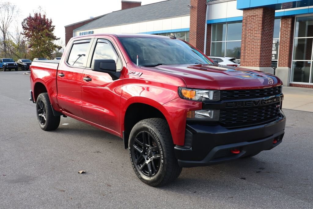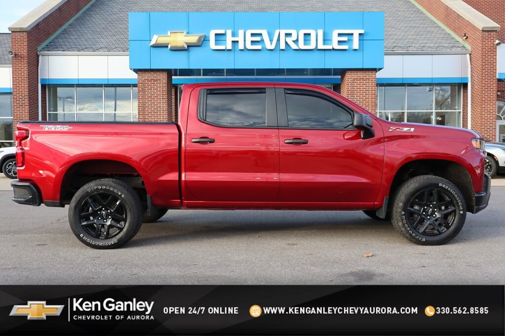 Recent Arrival! 2021 Cherry Red Tintcoat Chevrolet Silverado 1500 Custom Trail Boss Silverado 1500 Custom Trail Boss, 4D Crew Cab, EcoTec3 5.3L V8, 6-Speed Automatic Electronic with Overdrive, 4WD, Cherry Red Tintcoat, Black Cloth, 170 Amp Alternator, 3.5 Diagonal Monochromatic Display, 4.2 Diagonal Color Display Driver Info Center, 4G LTE Wi-Fi Hot Spot Capable, Android Auto, Apple CarPlay, Auto-Locking Rear Differential, Automatic Emergency Braking, Backup Camera, Black Name Plates (LPO), Bluetooth® For Phone, Chevrolet Connected Access Capable, Color-Keyed Carpeting Floor Covering, Compass, Custom Convenience Package, Dark Essentials Package (LPO), Deep-Tinted Glass, Electric Rear-Window Defogger, Electronic Cruise Control, EZ Lift Power Lock & Release Tailgate, Forward Collision Alert, Front Pedestrian Braking, Front Rubberized Vinyl Floor Mats, Heavy-Duty Air Filter, High Gloss Black Grille, Hill Descent Control, Hitch Guidance, Infotainment Package, LED Cargo Area Lighting, Manual Tilt Wheel Steering Column, OnStar & Chevrolet Connected Services Capable, Performance Red Recovery Hooks, Power Door Locks, Power Front Windows w/Driver Express Up/Down, Power Front Windows w/Passenger Express Down, Power Rear Windows w/Express Down, Preferred Equipment Group 2CX, Rear 60/40 Folding Bench Seat (Folds Up), Rear Rubberized-Vinyl Floor Mats, Remote Keyless Entry, Remote Start, Remote Vehicle Starter System, Safety Confidence Package, SiriusXM Radio, Standard Tailgate, Steering Wheel Audio Controls, Suspension Package, Theft Deterrent System (Unauthorized Entry), Trailering Package.Clean CARFAX.This vehicle passed our Rigorous Safety inspection Performed by a Certified Technician. Value Internet Pricing: ALL of our customers receive REAL-TIME market value pricing. Our internet team spend countless hours ensuring we have the best price, based on equipment, mileage and condition. For your peace of mind, all of our vehicles include over 50 photos for you to judge the condition yourself. We provide a Carfax/ VIN history report and service records for every vehicle. As you do your comparison shopping, you'll see Ken Ganley Chevy of Aurora offers the best values in the market. We're also prepared to offer the very best financing and coverage options. We offer some of the industry's most competitve interest rates! Have a car you'd like to sell? We'll pay top dollar for it. For the most up-to-date pricing, photos, and inventory please visit www.ganleychevyaurora.com. Call or stop by Chevy of Aurora today. 310 W Garfield Rd Aurora, Ohio 44202. 330-562-8585. Out of town buyers: free airport pick-up. We can help arrange delivery right to your front door too!