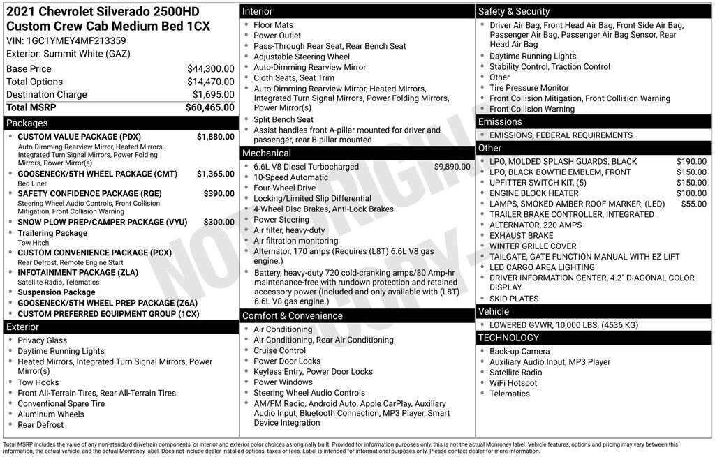 Recent Arrival! 2021 Summit White Chevrolet Silverado 2500HD Custom 10-Speed Automatic, 4WD, Black Cloth.