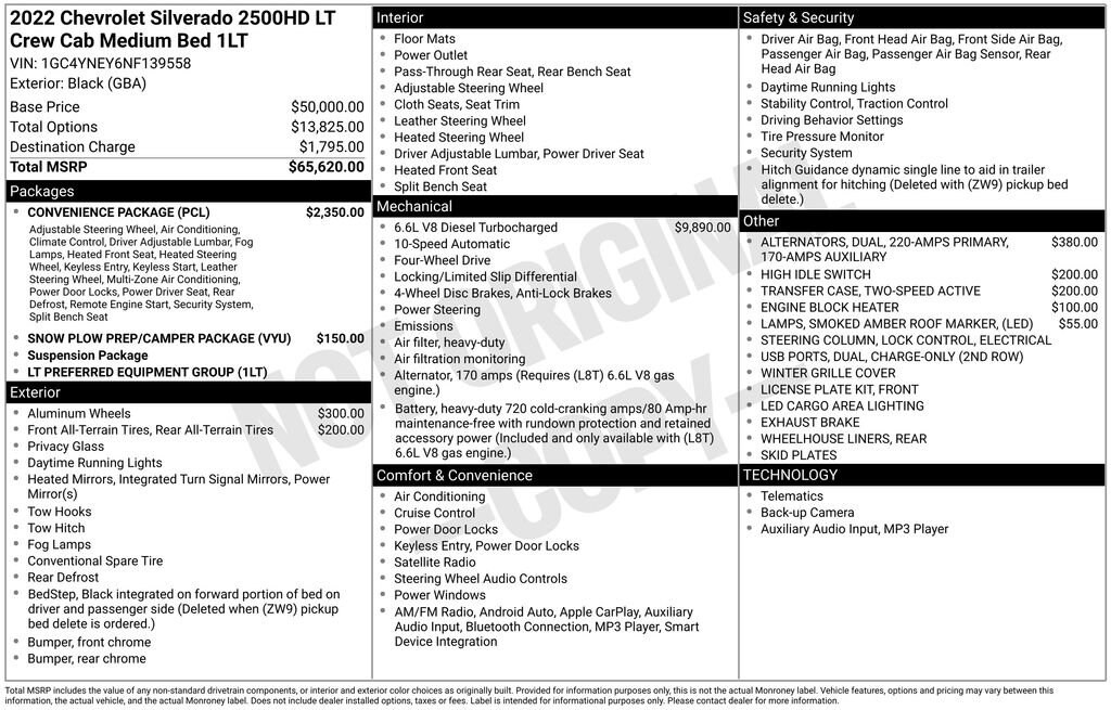 Recent Arrival! 2022 Black Chevrolet Silverado 2500HD LT 10-Speed Automatic, 4WD, Jet Black w/Cloth Seat Trim, 10-Way Power Driver Seat Adjuster w/Lumbar, 12-Volt Rear Auxiliary Power Outlet, 17 Machined Aluminum Wheels, 170 Amp Alternator, 2 USB Ports (1st Row), 2-Speed Electronic Shift Transfer Case, 220 Amp Alternator, 4-Way Manual Driver Seat Adjuster, 4.2 Diagonal Color Display Driver Info Center, Black Mirror Caps, Bluetooth® For Phone, Chevrolet Connected Access Capable, Chrome Front Grille, Color-Keyed Carpeting Floor Covering, Compass, Convenience Package, Deep-Tinted Glass, Dual Charge-Only USB Ports (2nd Row), Dual-Zone Automatic Climate Control, Electric Rear-Window Defogger, Electrical Lock Control Steering Column, Electronic Cruise Control w/Set & Resume Speed, EZ Lift Power Lock & Release Tailgate, Front 40/20/40 Split-Bench Seats w/Lockable Storage, Front LED Fog Lamps, Front Rubberized Vinyl Floor Mats, Halogen Reflector Headlamps, Heated Driver & Front Outboard Passenger Seating, Heated Steering Wheel, Heated Vertical Trailering Mirrors, High Idle Switch, Integrated Trailer Brake Controller, Keyless Open & Start, Leather-Wrapped Steering Wheel, LED Cargo Area Lighting, LED Smoked Amber Roof Marker Lamps, Manual Tilt & Telescoping Steering Column, Manual Tilt-Wheel Steering Column, OnStar & Chevrolet Connected Services Capable, Power Door Locks, Power Front Windows w/Driver Express Up/Down, Power Front Windows w/Passenger Express Down, Power Rear Windows w/Express Down, Preferred Equipment Group 1LT, Rear 60/40 Folding Bench Seat (Folds Up), Rear Rubberized Vinyl Floor Mats, Rear Vision Camera, Rear Wheelhouse Liners, Remote Keyless Entry, Remote Vehicle Starter System, SiriusXM Radio, Snow Plow Prep/Camper Package, Standard Tailgate, Steering Wheel Audio Controls, Unauthorized Entry Theft-Deterrent System, Urethane Steering Wheel, Wheels: 18 Machined Alum w/Silver Painted Accents, Wi-Fi Hotspot Capable.