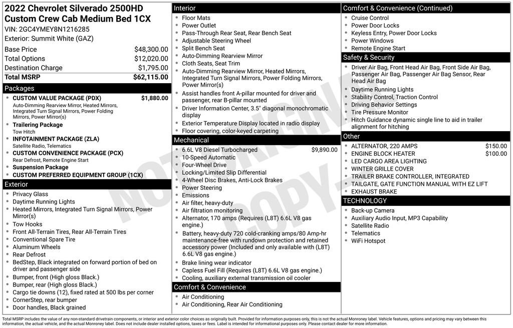 Recent Arrival! 2022 Summit White Chevrolet Silverado 2500HD Custom 10-Speed Automatic, 4WD, Jet Black Cloth, 170 Amp Alternator, 2-Speed Electronic Shift Transfer Case, 3.5 Diagonal Monochromatic Display DIC, Auto-Dimming Inside Rear-View Mirror, Black Mirror Caps, Bluetooth® For Phone, Body Color Front Grille, Chevrolet Connected Access Capable, Color-Keyed Carpeting Floor Covering, Compass, Custom Convenience Package, Custom Value Package, Deep-Tinted Glass, Electric Rear-Window Defogger, Electronic Cruise Control w/Set & Resume Speed, EZ Lift Power Lock & Release Tailgate, Front Rubberized Vinyl Floor Mats, Heated & Auto-Dimming Vertical Trailering Mirrors, Heated Vertical Trailering Mirrors, Infotainment Package, Integrated Trailer Brake Controller, LED Cargo Area Lighting, Locking Tailgate, Manual Tailgate Function w/No EZ Lift, Manual Tilt-Wheel Steering Column, OnStar & Chevrolet Connected Services Capable, Power Door Locks, Power Front Windows w/Driver Express Up/Down, Power Front Windows w/Passenger Express Down, Power Rear Windows w/Express Down, Preferred Equipment Group 1CX, Rear 60/40 Folding Bench Seat (Folds Up), Rear Rubberized Vinyl Floor Mats, Remote Keyless Entry, Remote Vehicle Starter System, SiriusXM Radio, Standard Tailgate, Wi-Fi Hotspot Capable.