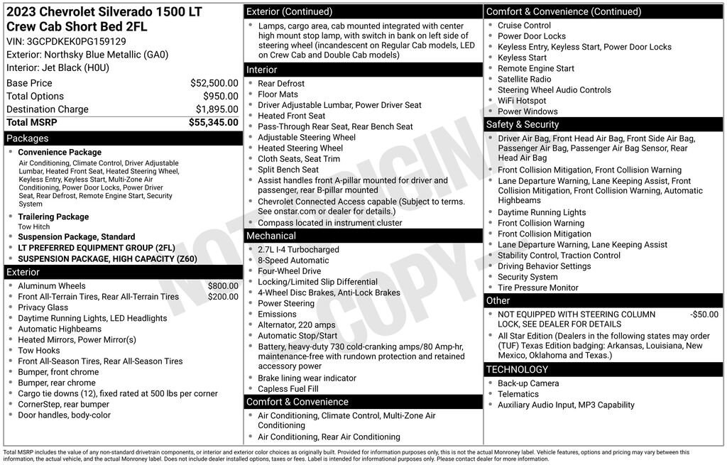 Recent Arrival! 2023 Northsky Blue Metallic Chevrolet Silverado 1500 LT 10-Way Power Driver Seat w/Lumbar, 12.3 Multicolor Reconfigurable Digital Display, 120-Volt Bed Mounted Power Outlet, 120-Volt Instrument Panel Power Outlet, 3.42 Rear Axle Ratio, All-Star Edition, Auto-Locking Rear Differential, Bluetooth® For Phone, Chevrolet Connected Access Capable, Chrome Mirror Caps, Color-Keyed Carpeting Floor Covering, Compass, Convenience Package, Deep-Tinted Glass, Dual Rear USB Ports (Charge Only), Dual-Zone Automatic Climate Control, Electrical Steering Column Lock, Electronic Cruise Control, Front Frame-Mounted Black Recovery Hooks, HD Rear Vision Camera, Heated Driver & Front Outboard Passenger Seats, Heated Steering Wheel, High Capacity Suspension Package, Hitch Guidance, Keyless Open & Start, LED Cargo Area Lighting, OnStar & Chevrolet Connected Services Capable, Power Front Windows w/Driver Express Up/Down, Power Front Windows w/Passenger Express Down, Power Rear Windows w/Express Down, Preferred Equipment Group 2FL, Rear 60/40 Folding Bench Seat (Folds Up), SiriusXM w/360L, Steering Wheel Audio Controls, Trailering Package, Wheels: 20 x 9 Painted Aluminum, Wi-Fi Hot Spot Capable, Wireless Phone Projection, Wrapped Steering Wheel.