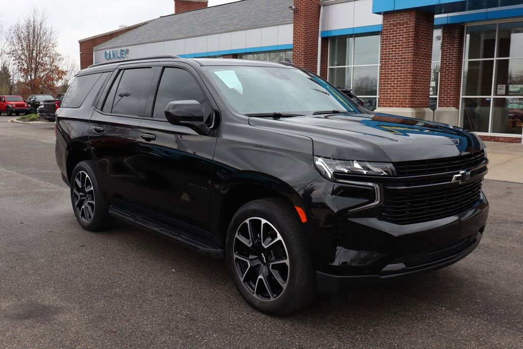 Recent Arrival! 2023 Black Chevrolet Tahoe RST Tahoe RST, 4D Sport Utility, EcoTec3 5.3L V8, 10-Speed Automatic with Overdrive, 4WD, Black, Jet Black/Victory Red Leather, 1st & 2nd Row Color-Keyed Carpeted Floor Mats, Android Auto, Apple CarPlay, Auto-Dimming Inside Rear-View Mirror, Backup Camera, Bose 9-Speaker Stereo Audio System Feature, Bright Front & Rear Door Sill Plates, Color-Keyed Carpeting Floor Covering, Driver & Front Outboard Passenger Airbags, Dual-Pane Power Panoramic Sunroof, Enhanced Driver Information Center, Floor Console w/Storage Area, Hands-Free Rear Power Programmable Liftgate, Infotainment Display, LED Daytime Running Lamps, Memory Settings for Driver, Power Liftgate, Preferred Equipment Group 1SP, Remote Start, Remote Start, SiriusXM Radio w/360L, Universal Home Remote, Wireless Charging, Wrapped Steering Wheel.Priced below KBB Fair Purchase Price! Odometer is 17768 miles below market average!This vehicle passed our Rigorous Safety inspection Performed by a Certified Technician. Value Internet Pricing: ALL of our customers receive REAL-TIME market value pricing. Our internet team spend countless hours ensuring we have the best price, based on equipment, mileage and condition. For your peace of mind, all of our vehicles include over 50 photos for you to judge the condition yourself. We provide a Carfax/ VIN history report and service records for every vehicle. As you do your comparison shopping, you'll see Ken Ganley Chevy of Aurora offers the best values in the market. We're also prepared to offer the very best financing and coverage options. We offer some of the industry's most competitve interest rates! Have a car you'd like to sell? We'll pay top dollar for it. For the most up-to-date pricing, photos, and inventory please visit www.ganleychevyaurora.com. Call or stop by Chevy of Aurora today. 310 W Garfield Rd Aurora, Ohio 44202. 330-562-8585. Out of town buyers: free airport pick-up. We can help arrange delivery right to your front door too!