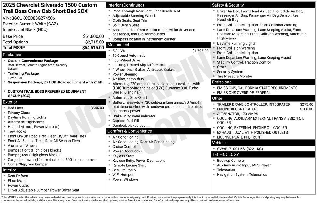 Recent Arrival! 2025 Summit White Chevrolet Silverado 1500 Custom Trail Boss 10-Way Power Driver Seat w/Lumbar, 120-Volt Bed Mounted Power Outlet, 120-Volt Interior Power Outlet, 3.23 Rear Axle Ratio, 3.5 Monochromatic Display Driver Info Center, Auto-Locking Rear Differential, Bluetooth® For Phone, Color-Keyed Carpeting Floor Covering, Custom Convenience Package, Deep-Tinted Glass, Dual Rear USB Ports (Charge Only), Electric Rear-Window Defogger, Electronic Cruise Control, EZ Lift Power Lock & Release Tailgate, Front Rubberized Vinyl Floor Mats, HD Rear Vision Camera, Heavy-Duty Air Filter, Hill Descent Control, Hitch Guidance, LED Cargo Area Lighting, Manual Tilt Wheel Steering Column, OnStar Services Capable, Performance Red Recovery Hooks, Power Front Windows w/Driver Express Up/Down, Power Front Windows w/Passenger Express Down, Power Rear Windows w/Express Down, Preferred Equipment Group 2CX, Rear 60/40 Folding Bench Seat (Folds Up), Rear Rubberized-Vinyl Floor Mats, Remote Keyless Entry, Remote Vehicle Starter System, SiriusXM Trial Subscription, Standard Tailgate, Suspension Package, Teen Driver, Theft Deterrent System (Unauthorized Entry), Tire Pressure Monitoring System, Trailering Package, Wheels: 18 x 8.5 Black Painted Aluminum, Wi-Fi Hot Spot Capable.CARFAX One-Owner. Clean CARFAX. Odometer is 8185 miles below market average!This vehicle passed our Rigorous Safety inspection Performed by a Certified Technician. Value Internet Pricing: ALL of our customers receive REAL-TIME market value pricing. Our internet team spend countless hours ensuring we have the best price, based on equipment, mileage and condition. For your peace of mind, all of our vehicles include over 50 photos for you to judge the condition yourself. We provide a Carfax/ VIN history report and service records for every vehicle. As you do your comparison shopping, you'll see Ken Ganley Chevy of Aurora offers the best values in the market. We're also prepared to offer the very best financing and coverage options. We offer some of the industry's most competitve interest rates! Have a car you'd like to sell? We'll pay top dollar for it. For the most up-to-date pricing, photos, and inventory please visit www.ganleychevyaurora.com. Call or stop by Chevy of Aurora today. 310 W Garfield Rd Aurora, Ohio 44202. 330-562-8585. Out of town buyers: free airport pick-up. We can help arrange delivery right to your front door too!