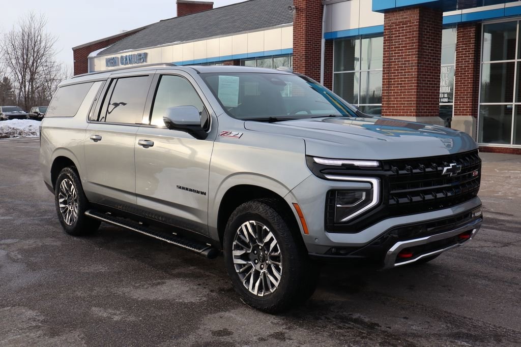 Recent Arrival! 2025 Sterling Gray Metallic Chevrolet Suburban Z71 1st and 2nd Row All Weather Floor Mats, 2 USB Charge/Data Ports in Center Console Delete, 2-Speed Active Electronic AutoTrac Transfer Case, 3rd Row 60/40 Power-Folding Split-Bench, 8-Way Power Front Passenger Seat Adjuster, Advanced Trailering Package, Air Ride Adaptive Suspension, Auto-Dimming Inside Rear-View Mirror, Black Tubular Assist Steps, Blind Zone Steering Assist with Trailering, Bose 10-Speaker Surround with CenterPoint, Bright Front and Rear Door Sill Plates, Comfort Package, Dual Exhaust System, Dual-Pane Power Panoramic Sunroof, Electronic Limited Slip Differential, Front High-Approach Angle Fascia, Front LED Fog Lamps, Heated 2nd Row Outboard Seats, Heated Driver and Front Passenger Seats, Heated Power-Adjustable Outside Mirrors, Heated Steering Wheel, Heavy-Duty Air Filter, Hill Descent Control, Hitch View with Pan/Zoom Image Adjustment, Integrated Trailer Brake Controller, LED Headlamps with LED Daytime Running Lamps, LED Tail Lamps, Magnetic Ride Control Suspension, Max Trailering Package, Memory Settings, Memory Settings For Driver, Off-Road Capability Package, Power Release 2nd Row Bucket Seats, Power-Sliding Center Floor Console, Preferred Equipment Group 2Z7, Rear Power Liftgate, Red Recovery Hooks, Smart Trailer Integration Indicator, Universal Home Remote, Wheels: 20 x 9 Bright Machined Aluminum, Wireless Phone Charging, Z71 Exterior Features, Z71 Off-Road Package.Priced below KBB Fair Purchase Price! CARFAX One-Owner. Odometer is 12118 miles below market average!This vehicle passed our Rigorous Safety inspection Performed by a Certified Technician. Value Internet Pricing: ALL of our customers receive REAL-TIME market value pricing. Our internet team spend countless hours ensuring we have the best price, based on equipment, mileage and condition. For your peace of mind, all of our vehicles include over 50 photos for you to judge the condition yourself. We provide a Carfax/ VIN history report and service records for every vehicle. As you do your comparison shopping, youâll see Ganley Chevy of Aurora offers the best values in the market. Weâre also prepared to offer the very best financing and warranty options. Nobody beats our interest rates! Have a car youâd like to sell? Weâll pay top dollar for it. For the most up-to-date pricing, photos, and inventory please visit www.GanleyGM.com. Call or stop by Chevy of Aurora today. 310 W. Garfield Rd. Aurora, Ohio 44202. 330-562-8585. Out of town buyers: free airport pick-up. We can help arrange delivery right to your front door too!At Ken Ganley Chevrolet Aurora, we are proud to be a trusted Chevrolet dealership serving Aurora, Ohio, and the surrounding communities including Cleveland, Akron, Solon, Twinsburg, Hudson, and Streetsboro. As part of the Ken Ganley Automotive Group, our mission is to deliver an exceptional automotive experience built on integrity, transparency, and outstanding customer service. We offer a wide selection of new Chevrolet vehicles, from dependable sedans to powerful trucks and family-friendly SUVs, along with a carefully inspected inventory of pre-owned and certified pre-owned vehicles. Whether youâre searching for a new Chevy Silverado, Equinox, Traverse, or a quality used car, our knowledgeable sales team is here to help you find the perfect fit for your lifestyle and budget. Beyond sales, our commitment continues with a state-of-the-art service and parts department staffed by factory-trained technicians. From routine maintenance to major repairs, we use genuine Chevrolet parts to keep your vehicle running at its best for years to come. At Ken Ganley Chevrolet Aurora, we value long-term relationships and strive to be the dealership you can rely on for all your automotive needs. We look forward to welcoming drivers from Aurora and nearby cities and helping you experience the difference of shopping with a dealership that truly puts c