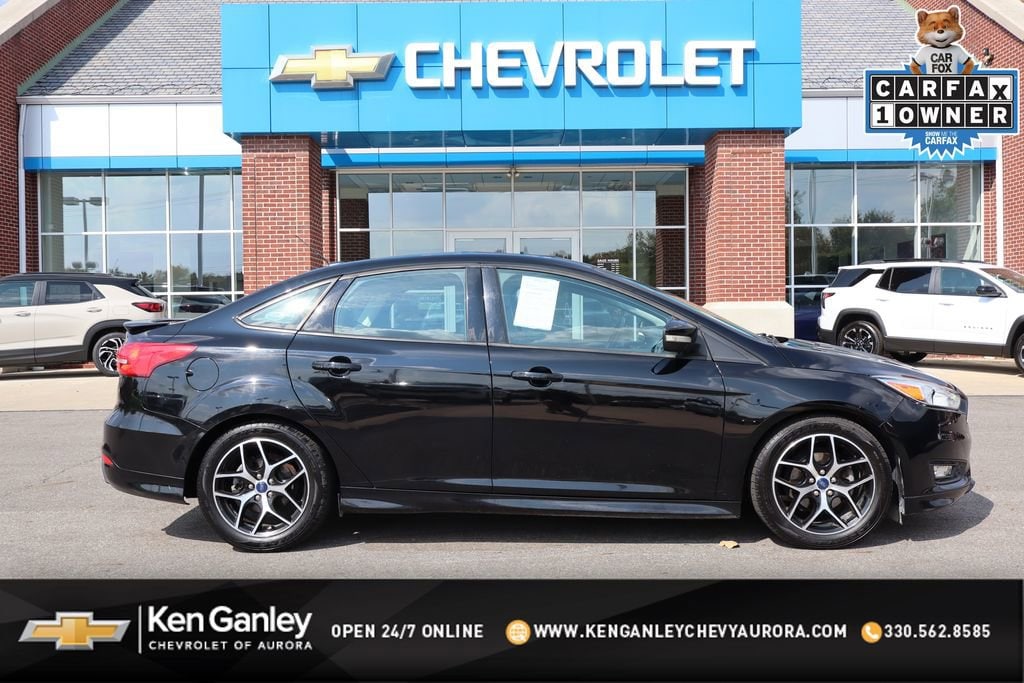 2016 Shadow Black Ford Focus SE Focus SE, 4D Sedan, 2.0L 4-Cylinder DGI Flex Fuel DOHC, Automatic, FWD, Shadow Black, Black Cloth, 17 Machined-Aluminum Wheels, Backup Camera, Body Kit, Equipment Group 200A, Fog Lamps, Leather-Wrapped Steering Wheel, Rear Disc Brakes, Rear Spoiler, SE Sport Package.CARFAX One-Owner. Odometer is 4098 miles below market average! 27/40 City/Highway MPGThis vehicle passed our Rigorous Safety inspection Performed by a Certified Technician. Value Internet Pricing: ALL of our customers receive REAL-TIME market value pricing. Our internet team spend countless hours ensuring we have the best price, based on equipment, mileage and condition. For your peace of mind, all of our vehicles include over 50 photos for you to judge the condition yourself. We provide a Carfax/ VIN history report and service records for every vehicle. As you do your comparison shopping, you'll see Ken Ganley Chevy of Aurora offers the best values in the market. We're also prepared to offer the very best financing and coverage options. We offer some of the industry's most competitve interest rates! Have a car you'd like to sell? We'll pay top dollar for it. For the most up-to-date pricing, photos, and inventory please visit www.ganleychevyaurora.com. Call or stop by Chevy of Aurora today. 310 W Garfield Rd Aurora, Ohio 44202. 330-562-8585. Out of town buyers: free airport pick-up. We can help arrange delivery right to your front door too!