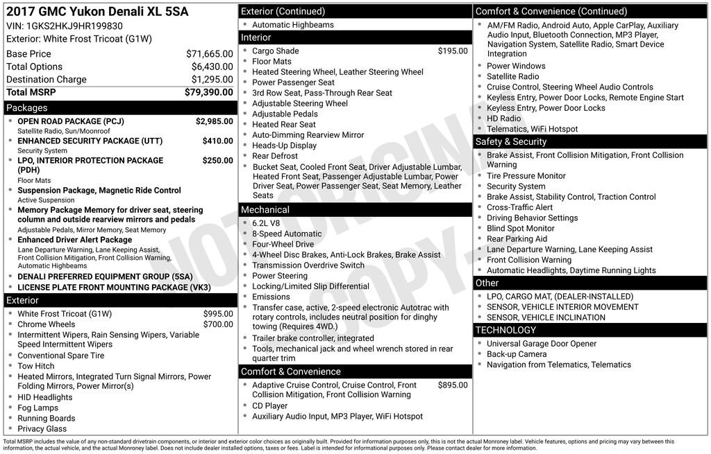 2017 White Frost Tricoat GMC Yukon XL Denali 4WD, 20 Chrome Wheels, 3rd Row DVD Screen, 4-Wheel Disc & 4-Wheel VAC Power Antilock Brakes, Adaptive Cruise Control w/Front Automatic Braking, All-Weather Cargo Mat (LPO), All-Weather Floor Mats, Automatic Collision Preparation, Cargo Security Shade (LPO), Enhanced Security Package, Interior Protection Package (LPO), Open Road Package, Power Tilt-Sliding Sunroof w/Express-Open/Close, Rear Seat Blu-Ray/DVD Entertainment System, Theft-Deterrent Alarm System, Vehicle Inclination Sensor, Vehicle Interior Movement Sensor.