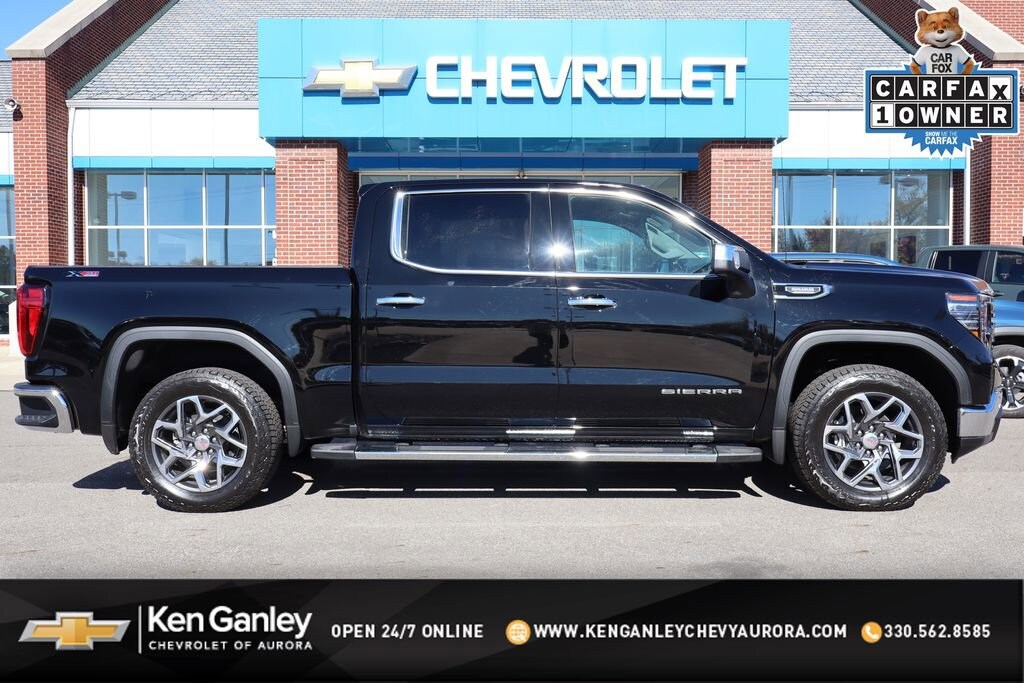 Recent Arrival! 2025 Onyx Black GMC Sierra 1500 SLT 120-Volt Bed Mounted Power Outlet, 120-Volt Interior Power Outlet, 170 Amp Alternator, 2 Charge/Data USB Ports, 2 Charge/Data USB Ports Inside Center Console, 2 Type-C Charge-Only Rear USB Ports, 3.23 Rear Axle Ratio, 6-Speaker Audio System Feature, Adaptive Cruise Control, All-Weather Floor Liner (LPO), Auto-Locking Rear Differential, Auxiliary External Transmission Oil Cooler, Chrome Header & Chrome Grille Insert Bars, Chrome Wheel To Wheel Assist Steps, Color-Keyed Carpeting Floor Covering, Deep-Tinted Glass, Dual Exhaust System, Electric Rear-Window Defogger, Electronic Precision Shift, Floor-Mounted Center Console, Front Bucket Seats, Front Frame-Mounted Black Recovery Hooks, Front Rain-Sensing Wipers, HD Rear Vision Camera, HD Surround Vision, Heated 2nd Row Outboard Seats, Heavy-Duty Air Filter, High Capacity Suspension Package, Hill Descent Control, Hitch Guidance, Hitch View, In-Vehicle Trailering System App, Integrated Trailer Brake Controller, Keyless Open & Start, LED Cargo Area Lighting, Manual Tilt-Wheel & Telescoping Steering Column, Navigation System, Off-Road Suspension, OnStar Services Capable, Perimeter Lighting, Power Door Locks, Power Front Passenger Windows w/Express Up/Down, Power Front Windows w/Driver Express Up/Down, Power Rake & Telescoping Steering Column, Power Rear Windows w/Express Down, Power Sliding Rear Window w/Rear Defogger, Preferred Equipment Group 4SA, Premium Bose 7-Speaker Sound System, ProGrade Trailering System, Push Button Start, Rear Cross Traffic Braking, Rear Pedestrian Detection, Rear Wheelhouse Liners, Remote Vehicle Starter System, Safety Alert Seat, Sierra Safety Plus Package, SiriusXM w/360L Trial Subscription, SLT Convenience Package, SLT Preferred Package, SLT Premium Plus Package, Spray-On Pickup Bedliner w/GMC Logo, Steering Wheel Audio Controls, Theft Deterrent System (Unauthorized Entry), Trailer Camera Provisions, Trailer Side Blind Zone Alert, Trailering Package, Ultrasonic Front & Rear Park Assist, Universal Home Remote, Ventilated Driver & Front Passenger Seats, Wheels: 20 Polished Aluminum w/RFX, Wi-Fi Hotspot Capable, Wireless Charging, X31 Hard Badge, X31 Off-Road & Protection Package, X31 Off-Road Package.CARFAX One-Owner. Clean CARFAX. Odometer is 13519 miles below market average! 22/26 City/Highway MPGThis vehicle passed our Rigorous Safety inspection Performed by a Certified Technician. Value Internet Pricing: ALL of our customers receive REAL-TIME market value pricing. Our internet team spend countless hours ensuring we have the best price, based on equipment, mileage and condition. For your peace of mind, all of our vehicles include over 50 photos for you to judge the condition yourself. We provide a Carfax/ VIN history report and service records for every vehicle. As you do your comparison shopping, you'll see Ken Ganley Chevy of Aurora offers the best values in the market. We're also prepared to offer the very best financing and coverage options. We offer some of the industry's most competitve interest rates! Have a car you'd like to sell? We'll pay top dollar for it. For the most up-to-date pricing, photos, and inventory please visit www.ganleychevyaurora.com. Call or stop by Chevy of Aurora today. 310 W Garfield Rd Aurora, Ohio 44202. 330-562-8585. Out of town buyers: free airport pick-up. We can help arrange delivery right to your front door too!
